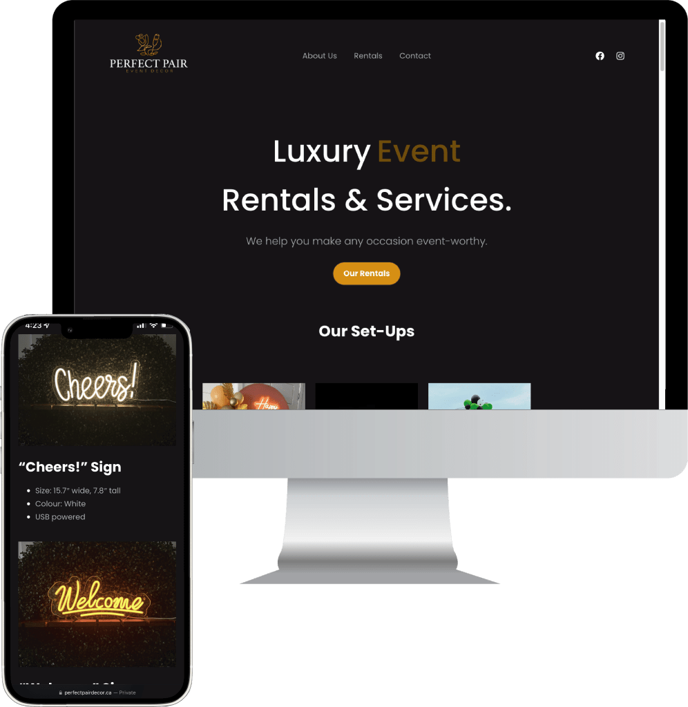 This website was built through WordPress for an Ottawa-based event decor company. The site highlights 40+ rental items available, services offered, an “about us” section, along with “contact” and “book now”.